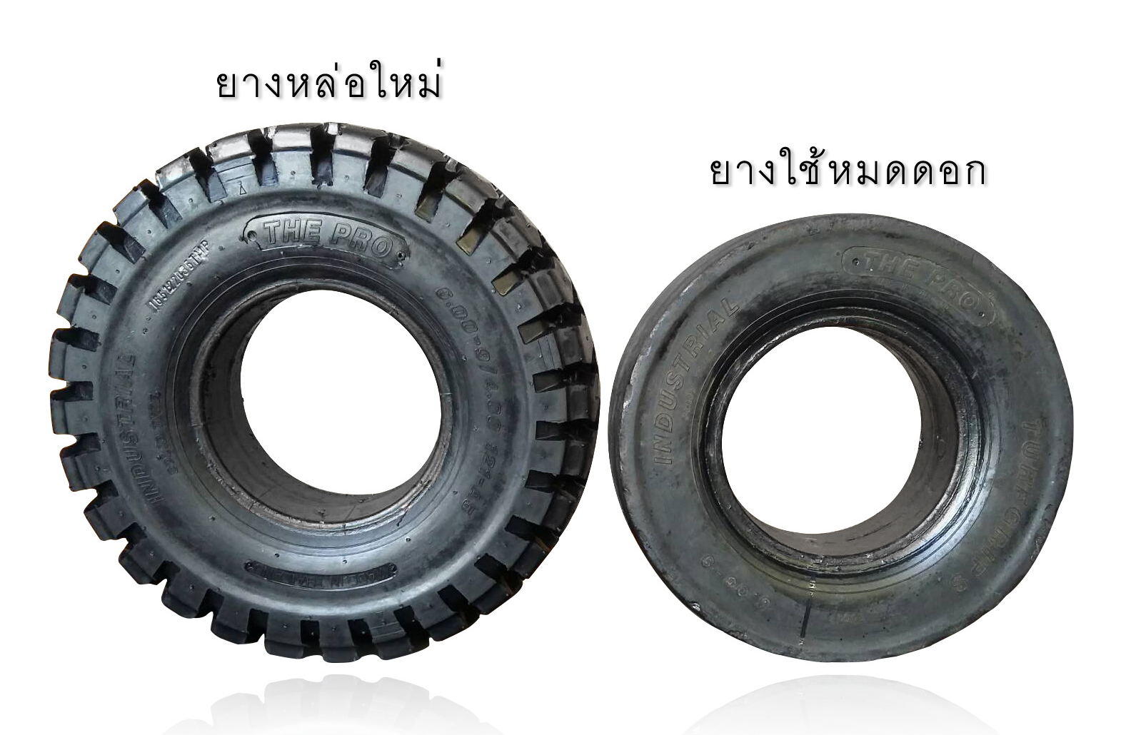 ยางตันเก่าที่ใช้หมดดอกแล้ว ที่ถูกถอดออกจกรถโฟล์คลิฟท์ ทั้งๆที่ถูกใช้ไปเพียง 2.3 cm. โดยส่วนใหญ่สภาพโครงยางยังดีสามารถนำมาใช้ได้ใหม่ จะถูกนำไปทิ้งอย่างน่าเสียดาย หากมีจำนวนมากขึ้นและไม่ได้รับการจัดการที่ถูกวิธี จะก่อให้เกิดปัญหาต่อสิ่งแวดล้อม ผู้ประกอบการต้องเสียค่าดำเนินการกำจัดยางเก่า เพิ่มต้นทุนในการดำเนินงานอีกด้วย